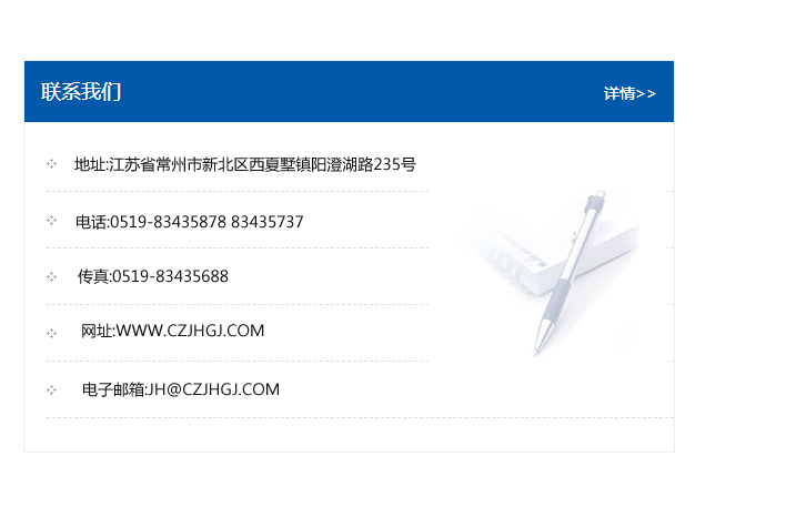 傳真:0519-83435688    郵編:213135    網址:WWW.czjhgj_com.bjhdbjy.com    電子郵箱:JH@czjhgj_com.bjhdbjy.com